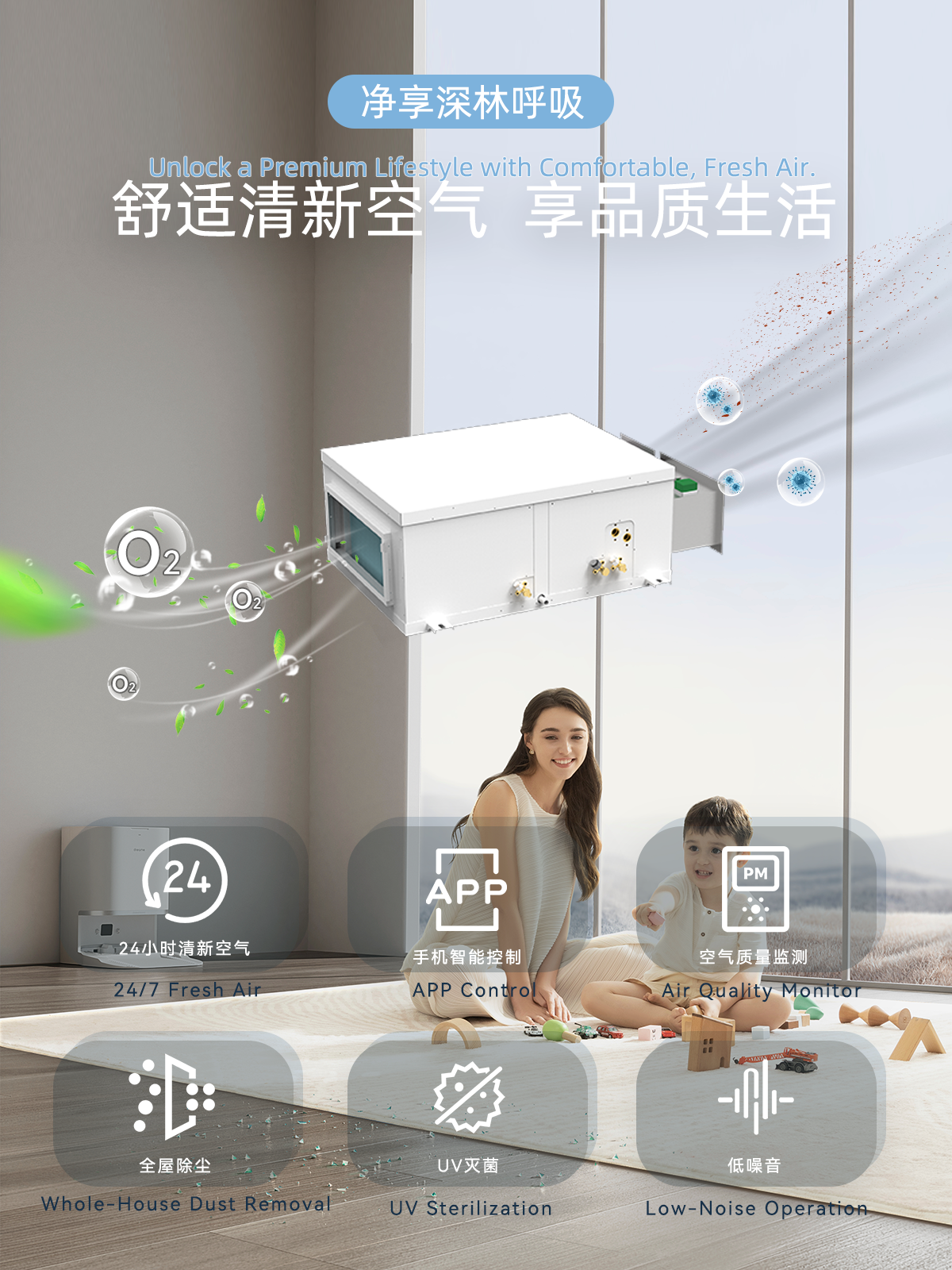 实现全屋新风智能控制与无死角除湿,有效防止家具发霉、衣物潮腻,保持体感干爽舒适。 -